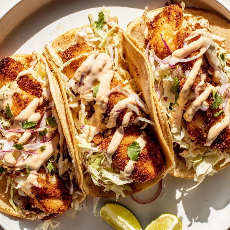 Save My first fish tacos came together on a Friday night when I had a fillet in the fridge and practically nothing else—no fancy plan, just desperation and optimism. I chopped what I could find: some cabbage that was still hanging on, a lime, a container of sour cream. What emerged from that scramble was so alive with bright flavors that I've been chasing that feeling ever since. Now these tacos are my go-to when I want something that tastes like a beach getaway but takes barely longer than ordering delivery.