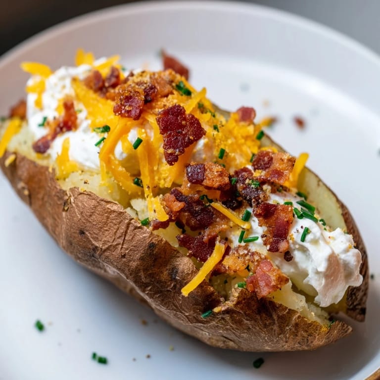 Save There's something about a loaded baked potato that stops me mid-week, when I'm tired and need something that feels like a real meal without the fuss. My roommate in college used to make these on Sunday nights, and the smell of bacon crisping in the pan while potatoes baked would fill our tiny dorm kitchen. I've been making them ever since, and they've never disappointed—whether I'm feeding myself or a table of hungry people who didn't expect to leave satisfied.